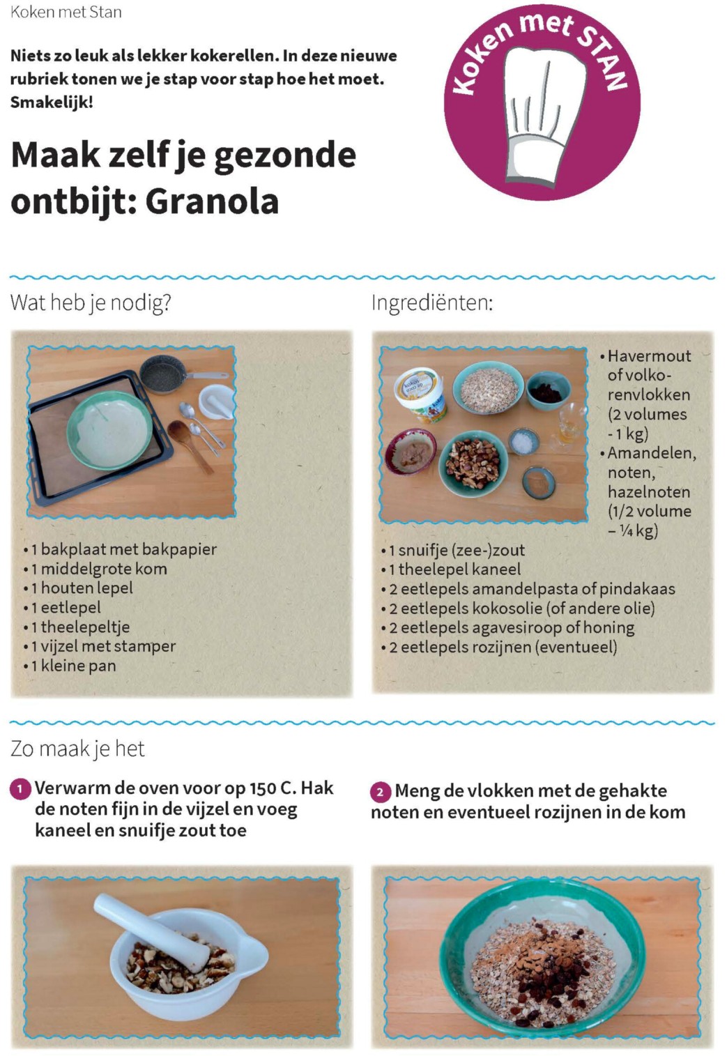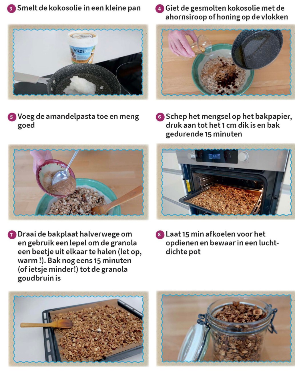 Met melk, yoghourt en extra fruit... start je ochtend met een gezond ontbijt. We leggen hier stap voor stap uit hoe je je granola zelf kan maken. Smakelijk!